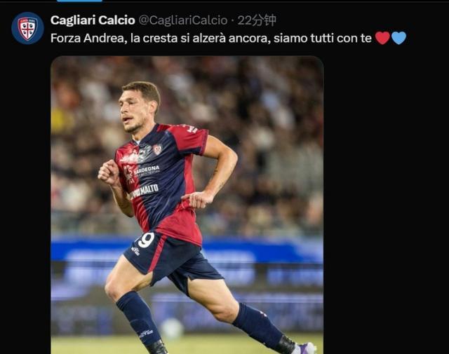 卡利亚里官方消息,前锋贝罗蒂遭遇十字韧带撕裂。